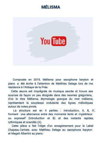 Composée en 2019, Mélisma pour saxophone baryton et
