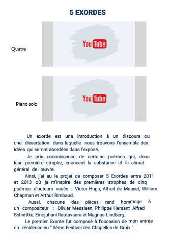 Ainsi, j’ai eu le projet de composer 5 Exordes entre 2011